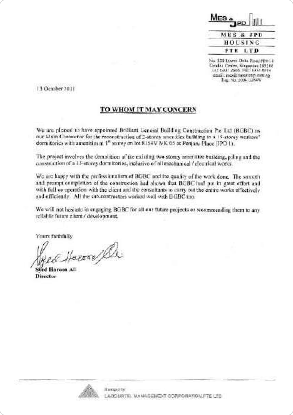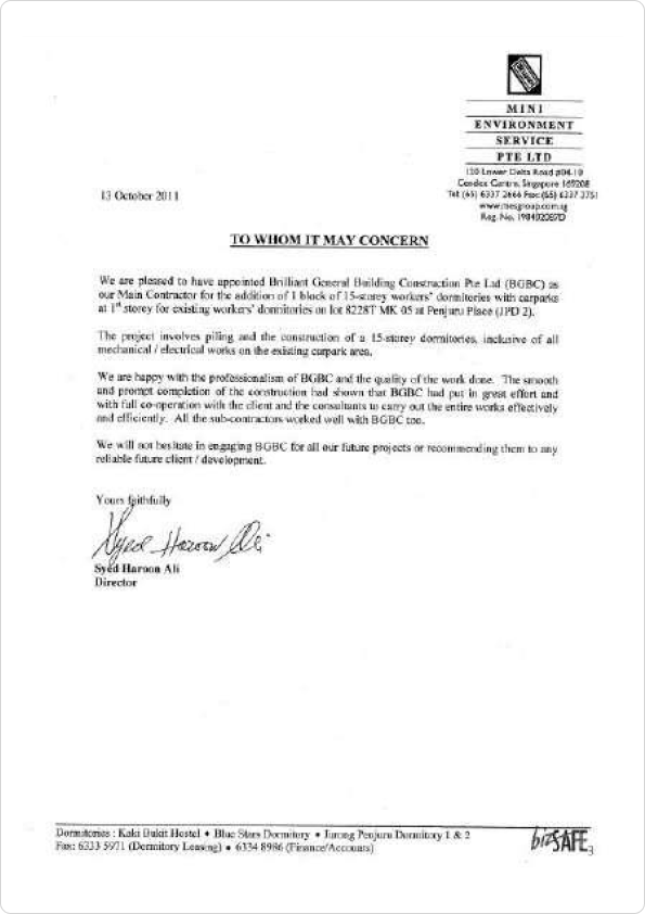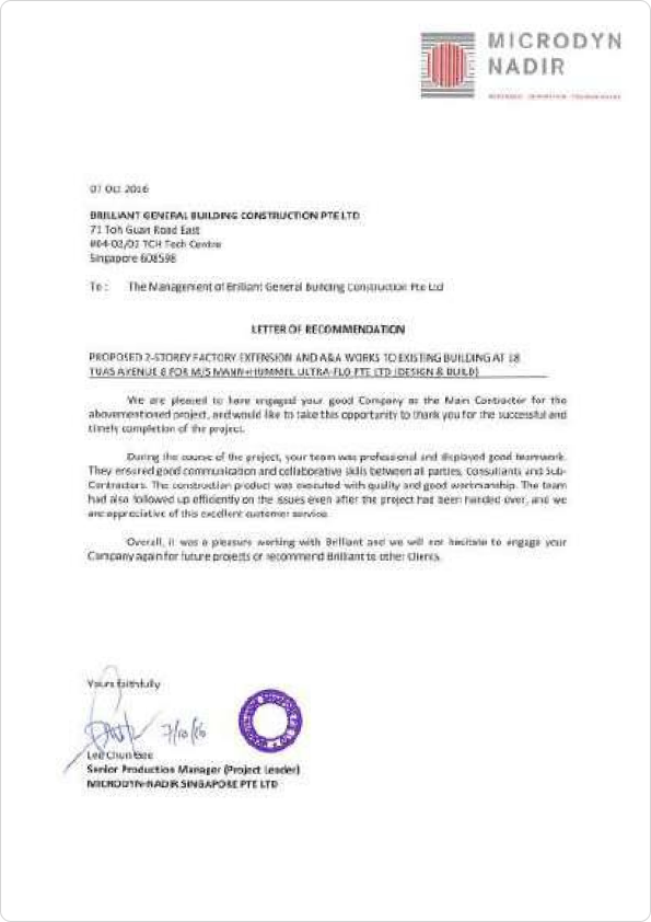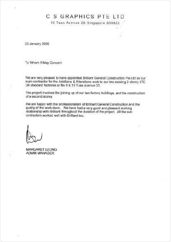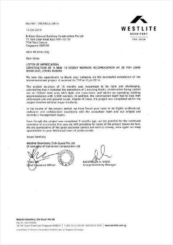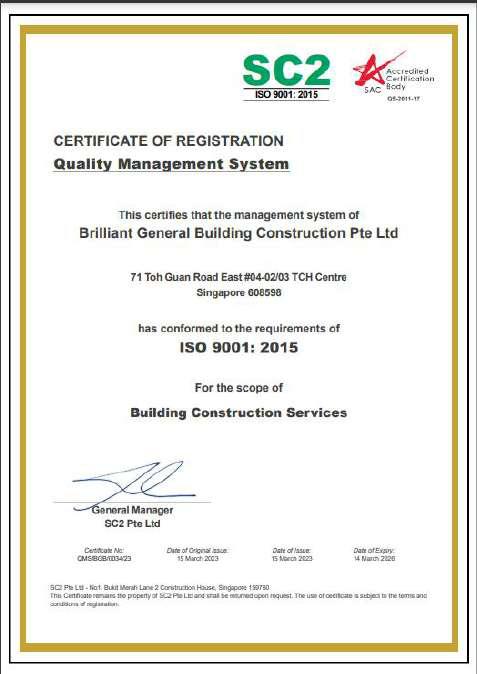 Yes. Through our partnership with Brilliant General Builders, we operate with BCA-approved capabilities for major construction and A&A works.
