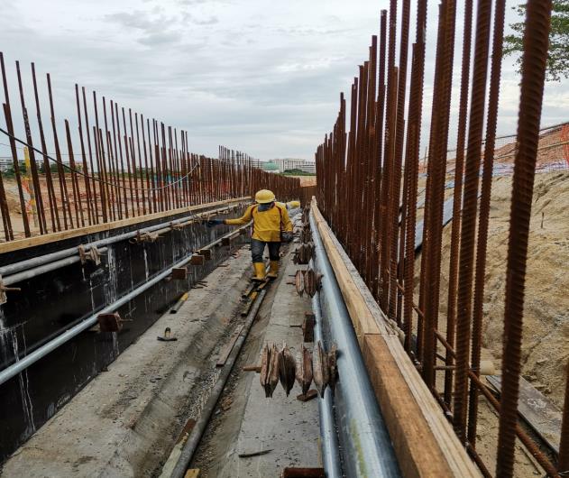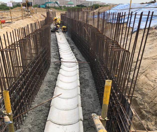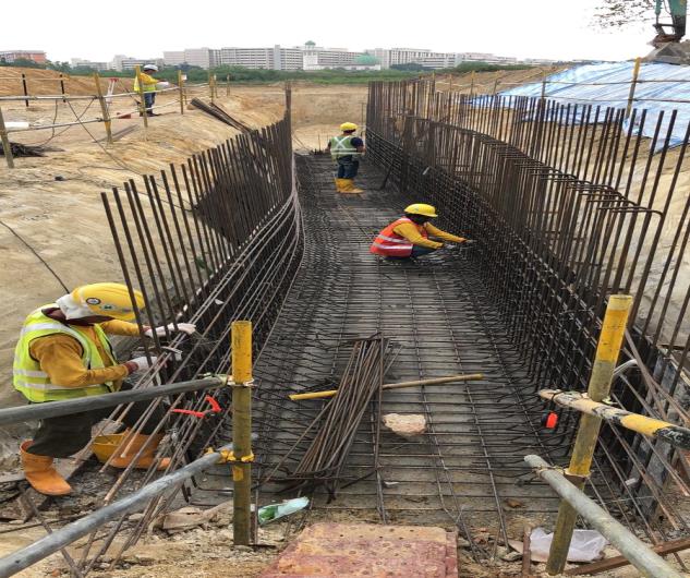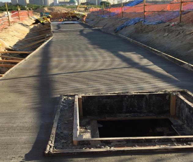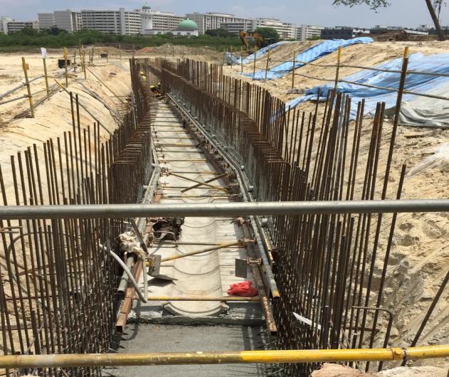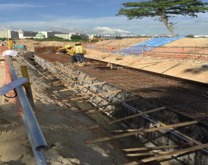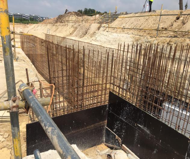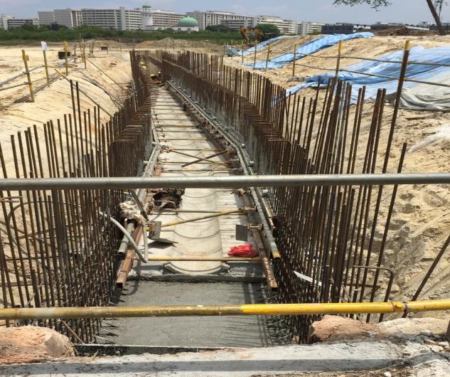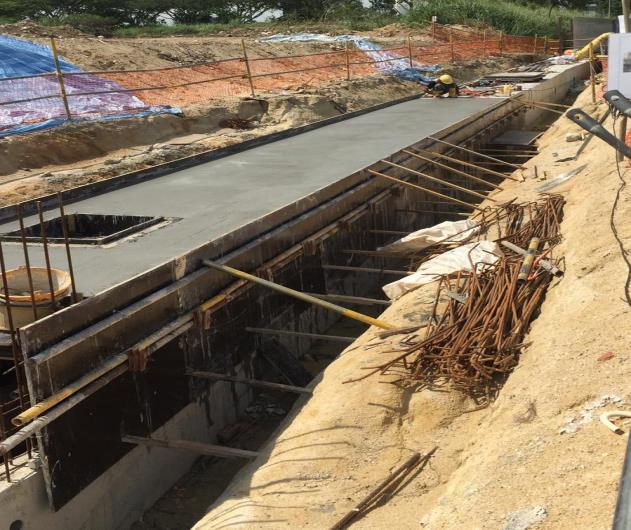 Supply and installation of full external drainage system including 1.2m, 2.5m, and 3m-wide box drains to connect to PUB outlet at Lot 26 Bedok Reservoir Road for JTC Corporation.